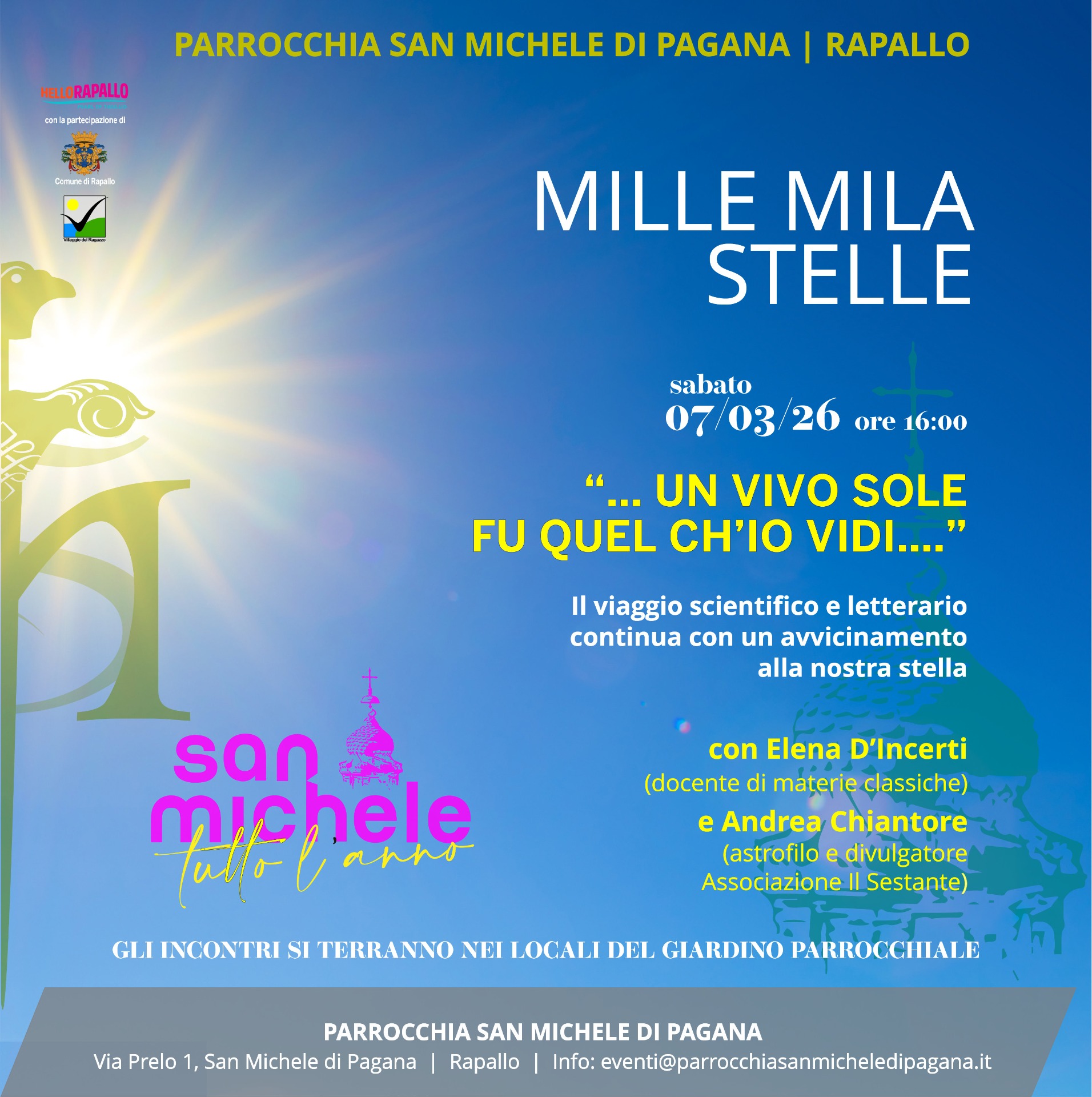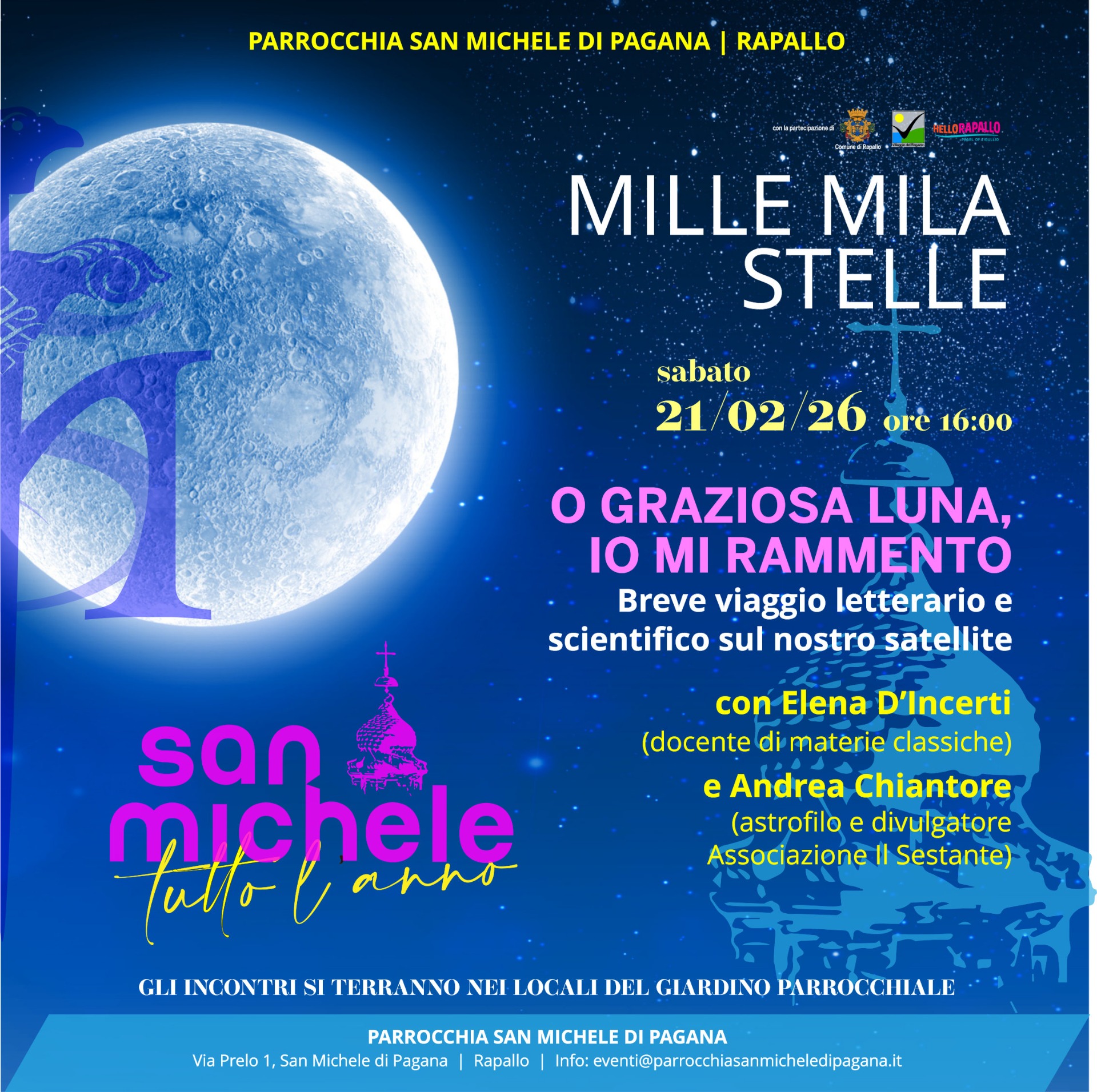 Per info e prenotazioni scrivere a: eventi@parrocchiasanmicheledipagana.it